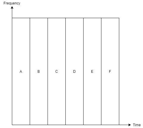 우선 전자과 관점에서 통신을 보면 주파수 대역폭에 신호를 실어 나르는 것이다. 이때 A가 보내는 신호와 B가 보내는 신호는 누가 보냈는지 구분되지 않는다. 따라서 여러 사용자가 하나의 공통 채널을 이용하는 경우 어떤 자원을 구분으로 규칙을 정하는지에 따라 위에 세 종류의 프로토콜로 나뉘게 된다. F는 주파수, T는 시간, C는 코드, 잘 모르겠으면 이것만 기억하도록 하자.